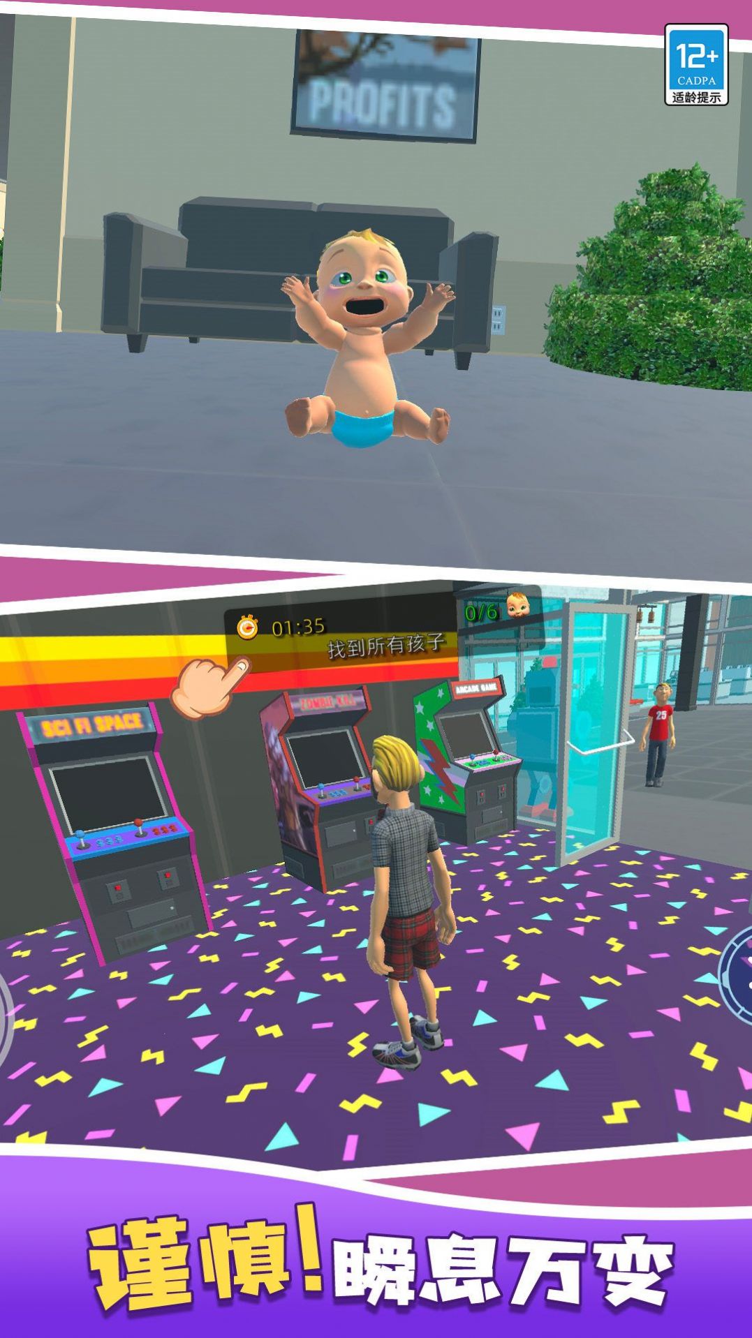 2.挑战关卡,解锁藏身技巧,运用家具,智躲爸爸视线;