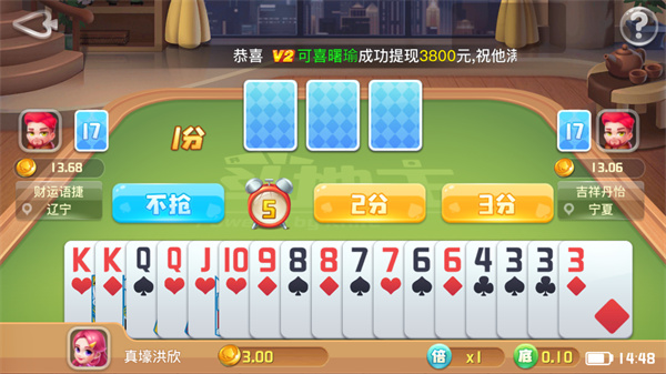 2、强大的智能系统提示出牌、自动托管、结算,让你超省心。