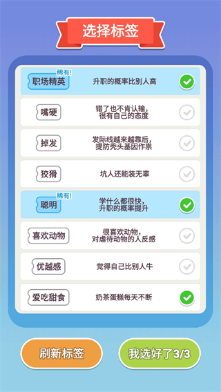 3、包含职场技能、生活技能、兴趣特长三大类,不同技能组合会解锁特殊职业路线。